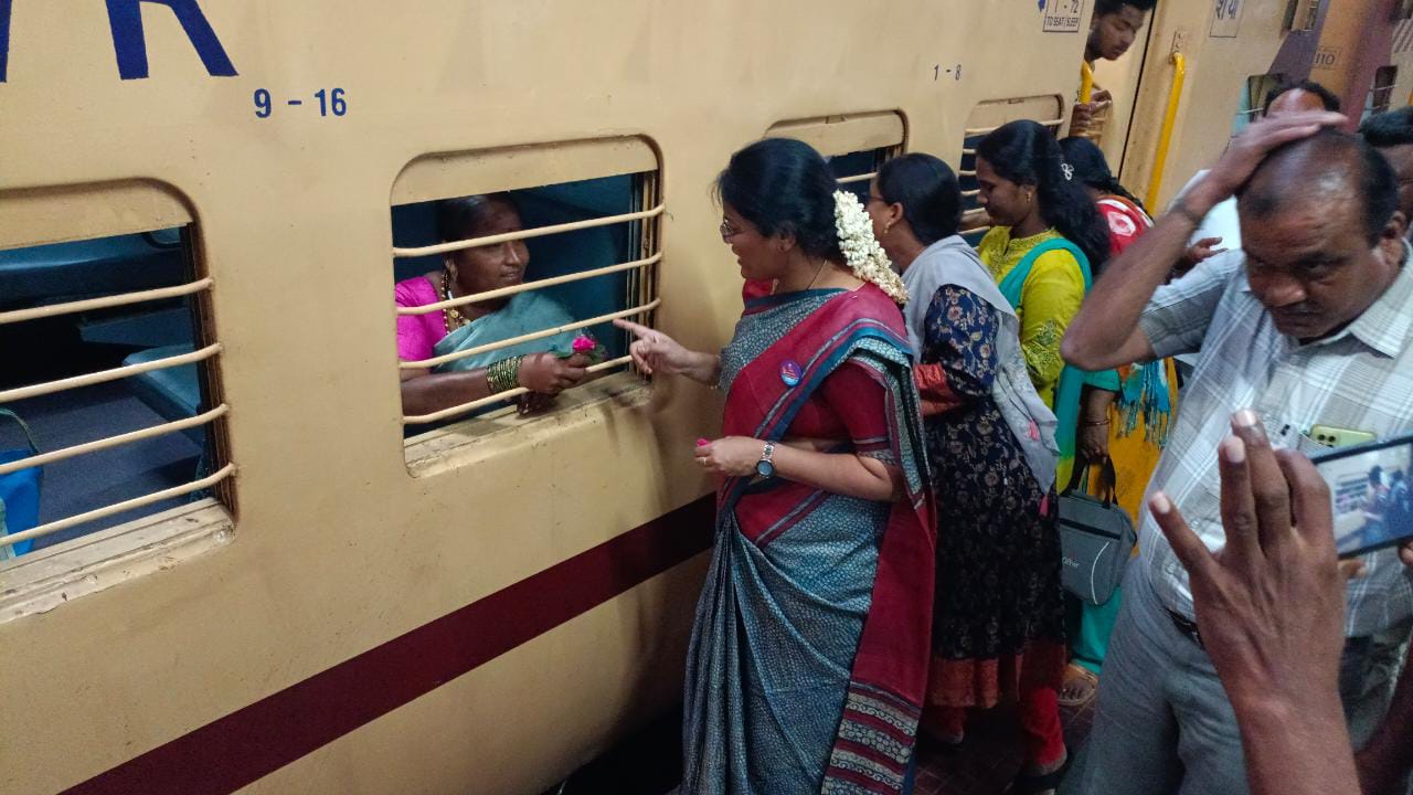 ರೈಲು ನಿಲ್ದಾಣದಲ್ಲಿ ಕುಳಿತ ಪ್ರಯಾಣಿಕರಿಗೆ ಸಿಬ್ಬಂದಿಗಳ ಜೊತೆಗೆ ಸೇರಿ ಹೂವು ಕೊಟ್ಟು ಕುಶಲೋಪರಿ ವಿಚಾರಿಸಿದ ಜಿ. ಪಂ ಮುಖ್ಯ ಕಾರ್ಯನಿರ್ವಾಹಕ ಅಧಿಕಾರಿಗಳು ಹೂವು ಕೊಡುವ ಮೂಲಕ ನಿಮ್ಮ ಊರು ಯಾವುದು..? ನೀವು ಎಲ್ಲೆ ಇದ್ದರು ಪರವಾಗಿಲ್ಲಾ ಮೇ 10 ರಂದು ನಿಮ್ಮ ಗ್ರಾಮಕ್ಕೆ ಹೋಗಿ ಕಡ್ಡಾಯವಾಗಿ ಮತದಾನ ಮಾಡಿ ಅಂತಾ ಕೇಳಿಕೊಂಡರು. ಈ ಸಂದರ್ಭದಲ್ಲಿ ಕೆಲವು ಜನರು ಮುಖ್ಯಕಾರ್ಯ ನಿರ್ವಾಹಕ ಅಧಿಕಾರಿ ಡಾ. ಸುಶೀಲಾ ಬಿ ಜೊತೆಗೆ ಸೆಲ್ಪೀ ತಗೆಸಿಕೊಂಡಿದ್ದು ವಿಶೇಷವಾಗಿತ್ತು.