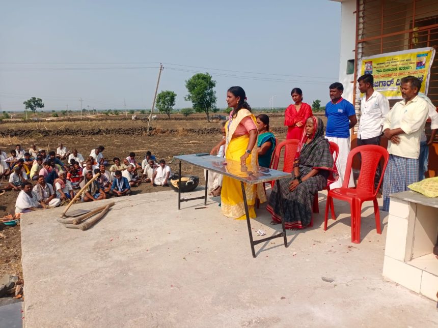 ರೋಣ ತಾಲೂಕಿನ ಕುರಡಗಿ ಗ್ರಾಮ ಪಂಚಾಯತ ವ್ಯಾಪ್ತಿಯ ಯರೇಬೇಲೇರಿ ಗ್ರಾಮದ ಹೊರವಲಯದ ಜಮೀನಿನಲ್ಲಿ ಸನ್ಮಾನ ಕಾರ್ಯಕ್ರಮ ನಡೆದಿದ್ದು ಕುರುಡಗಿ ಗ್ರಾಮ ಪಂಚಾಯತಿ ಅಭಿವೃದ್ಧಿ ಅಧಿಕಾರಿ ಶಿಲ್ಪಾ ಕವಲೂರ ಅವರಿಗೆ ಕೂಲಿ ಕಾರ್ಮಿಕರು ಸೇರಿದಂತೆ ಮೇಟ್ಸ್ ಗಳು ಗ್ರಾಮದ ಜಮೀನಿನಲ್ಲಿ ಸನ್ಮಾನ ಮಾಡುವ ಮೂಲಕ ಅಭಿಮಾನ ವ್ಯಕ್ತ ಪಡಿಸಿದ್ದಾರೆ.