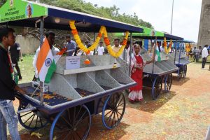 ನಗರದ ಕೆ.ಎಚ್.ಪಾಟೀಲ ಜಿಲ್ಲಾ ಕ್ರೀಡಾಂಗಣದಲ್ಲಿ ಜಿಲ್ಲಾಡಳಿತವು 2023 ಆಗಸ್ಟ 15 ರಂದು ಆಯೋಜಿಸಿದ್ದ ಸ್ವಾತಂತ್ರ್ಯೋತ್ಸವ ದಿನಾಚರಣೆಯಂದು ರಾಜ್ಯದ ಕಾನೂನು, ನ್ಯಾಯ ಮತ್ತು ಮಾನವ ಹಕ್ಕುಗಳು, ಸಂಸದೀಯ ವ್ಯವಹಾರಗಳು, ಶಾಸನ ರಚನೆ ಮತ್ತು ಪ್ರವಾಸೋದ್ಯಮ ಇಲಾಖೆ ಹಾಗೂ ಗದಗ ಜಿಲ್ಲಾ ಉಸ್ತುವಾರಿ ಸಚಿವ ಡಾ.ಎಚ್.ಕೆ.ಪಾಟೀಲ ಅವರು ಜಿಲ್ಲಾಡಳಿತದ ವತಿಯಿಂದ ಗದಗ-ಬೆಟಗೇರಿ ಅವಳಿ ನಗರದ 50 ಫಲಾನುಭವಿಗಳಿಗೆ ಕಾಯಿಪಲ್ಲೆ ಮಾರಾಟಾ ಹಾಗೂ ಹಣ್ಣು, ತರಕಾರಿ ವ್ಯಾಪಾರಿಗಳು ಬೀದಿಗಳಿಗೆ ತೆರಳಿ ವ್ಯಾಪಾರ ಮಾಡಲು ಹೈಟೆಕ್ ತಳ್ಳುವ ಗಾಡಿಗಳನ್ನು ಸಾಂಕೇತಿಕವಾಗಿ ವಿತರಿಸಿದರು.