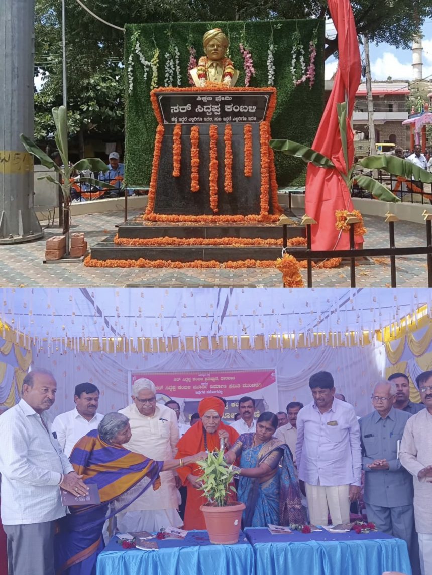 ಪಟ್ಟಣದ ಕೋಟೆಯ ಭಾಗದಲ್ಲಿ ಸರ್ ಸಿದ್ದಪ್ಪ ಕಂಬಳಿ ಕಂಚಿನ ಪುತ್ಥಳಿಯನ್ನು ಲೋಕಾರ್ಪಣೆ ಮಾಡಿ ನಂತರ ನಡೆದ ಸಮಾರಂಭದಲ್ಲಿ ಪಾಲ್ಗೊಂಡು ಮಾತನಾಡಿದರು ಧಾರವಾಡ ಕರ್ನಾಟಕ ವಿಶ್ವವಿದ್ಯಾಲಯ ಸೇರಿದಂತೆ ಅನೇಕ ಶಿಕ್ಷಣ ಸಂಸ್ಥೆಗಳು ಸಾಮಾಜಿಕ ಕೆಲಸಗಳನ್ನು ನಿಸ್ವಾರ್ಥದಿಂದ ಮಾಡಿದ ಸಿದ್ದಪ್ಪ ಕಂಬಳಿ ಅವರ ವಿಚಾರಗಳನ್ನು ಅರಿತುಕೊಂಡು ಅವರಿಗೆ ಗೌರವ ಕೊಡುವುದರಿಂದ ಸಮಾಜದಲ್ಲಿ ನಮ್ಮನ್ನು ನಾವು ಗೌರವಿಸಿಕೊಂಡಂತಾಗುತ್ತದೆ ದಿಟ್ಟತನದಿಂದ ಗುರುತಿಸಿಕೊಂಡಿದ್ದ ಕಂಬಳಿ ಅವರ ವಿಚಾರಗಳು ಎಲ್ಲ ಕಡೆಗೆ ಹರಡುವಂತಾಗಲಿ ಎಂದರು.