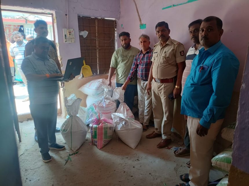 ಗದಗ: ಸರ್ಕಾರದಿಂದ ಬಡವರಿಗೆ ನೀಡುವ ಅನ್ನ ಭಾಗ್ಯ ಅಕ್ಕಿ ಸಂಗ್ರಹಿಸಿ ಮಾರಾಟ ಮಾಡುವ ಉದ್ದೇಶದಿಂದ ಬೆಟಗೇರಿ ಭಾಗದಲ್ಲಿ ಶೇಖರಣೆ ಮಾಡಿದ ಅನ್ನ ಭಾಗ್ಯದ ಅಕ್ಕಿಯ ಕುರಿತು ಖಚಿತ ಮಾಹಿತಿ ಮೇರಿಗೆ ಬೆಟಗೇರಿ ಪೋಲಿಸರು ದಾಳಿ ನಡೆಸಿದ್ದು 10 ಕ್ವಿಂಟಲ್ 60 ಕೆಜಿ ಅನ್ನ ಭಾಗ್ಯ ಅಕ್ಕಿ ದಾಳಿಯಲ್ಲಿ ಸಿಕ್ಕಿದೆ.