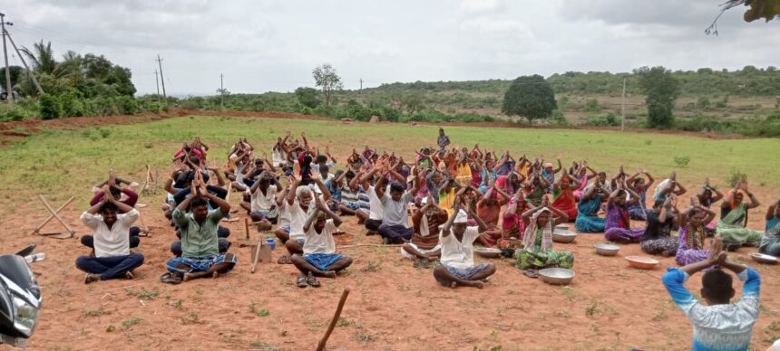 ರಾಜೂರು ಗ್ರಾಮ ಪಂಚಾಯತ ವ್ಯಾಪ್ತಿಯ ಬೈರಾಪೂರು ಗ್ರಾಮದಲ್ಲಿ ನರೇಗಾ ಯೋಜನೆಯಡಿಯ ಸಮುದಾಯ ಕಾಮಗಾರಿ ಸ್ಥಳದಲ್ಲಿ ನರೇಗಾ ಕೂಲಿಕಾರ್ಮಿಕರು ಭಾಗವಹಿಸಿದ ವಿಶ್ವ ಯೋಗ ದಿನಾಚರಣೆಯಲ್ಲಿ ಭಾಗವಹಿಸಿ ಮಾತನಾಡಿದರು.
