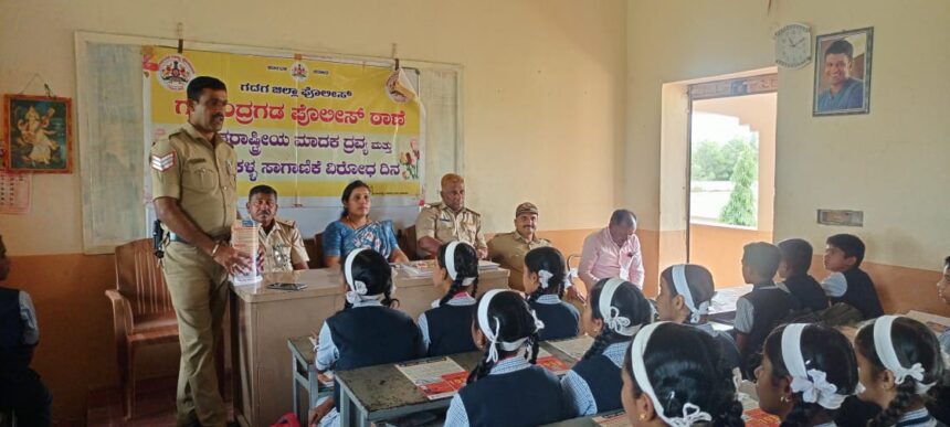 ಪಟ್ಟಣದ ಶ್ರೀ ಜಗದ್ಗುರು ತೋಂಟದಾರ್ಯ ಕನ್ನಡ ಮಾಧ್ಯಮ ಪ್ರೌಢ ಶಾಲೆಯ ವಿದ್ಯಾರ್ಥಿಗಳಿಗೆ ಪೊಲೀಸ್ ಇಲಾಖೆಯ ನೇತೃತ್ವದಲ್ಲಿ ನಡೆದ ಅಂತಾರಾಷ್ಟ್ರೀಯ ಮಾಧಕ ದ್ರವ್ಯ, ಕಳ್ಳ ಸಾಗಣಿಕೆ ವಿರೋಧ ದಿನದ ಪ್ರಯುಕ್ತ ಪ್ರಭಂದ ಸ್ಪರ್ಧೆಯಲ್ಲಿ
