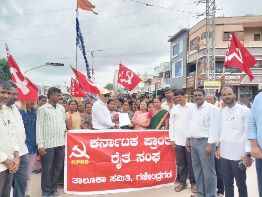 ಗಜೇಂದ್ರಗಡ: ದೇವನಹಳ್ಳಿ ರೈತರ ಹಕ್ಕೊತ್ತಾಯ ಈಡೇರಿಸಿ, ಭೂ ಹೋರಾಟಗಾರರನ್ನು ಬೇಷರತ್ ಬಿಡುಗಡೆ ಮಾಡಿ, ಅಮಾನವೀಯ ದೌರ್ಜನ್ಯ ಎಸಗಿ ಹೋರಾಟ ಹತ್ತಿಕ್ಕಿದ ಪೋಲಿಸರ ಮೇಲೆ ಕ್ರಮ ಕೈಗೊಳ್ಳಲು ಆಗ್ರಹಿಸಿ ಸಂಯುಕ್ತ ಹೋರಾಟ ಸಮಿತಿ ನೇತೃತ್ವದಲ್ಲಿ ತಹಶಿಲ್ದಾರರ ಮೂಲಕ ಮುಖ್ಯಮಂತ್ರಿ ಗಳಿಗೆ ಮನವಿ ಸಲ್ಲಿಸಿದರು.