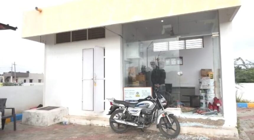 ಕಳ್ಳರು ಪೆಟ್ರೊಲ್ ಬಂಕ್ ನ ಗಾಜಿನ ಬಾಗಿಲು ಒಡೆದು ಸಿಬ್ಬಂದಿ ಕಣ್ಣಿಗೆ ಖಾರದ ಪುಡಿ ಎರಚಿ ಕ್ಯಾಶ್ ಬ್ಯಾಗ್ ಕಿತ್ತುಕೊಂಡು