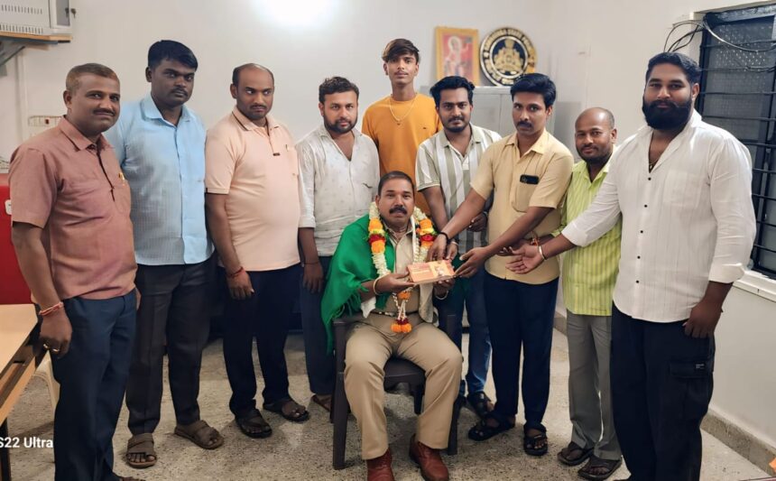 ನವಲಗುಂದ: ಸ್ಥಳೀಯ ಜನಸ್ನೇಹಿ ಪೊಲೀಸ್ ಠಾಣೆಗೆ ಕಲಘಟಗಿ ಪೊಲೀಸ್ ಠಾಣೆಯಿಂದ ವರ್ಗಾವಣೆಯಾಗಿ ಬಂದ ಎ.ಎಸ್.ಐ ಮಲ್ಲಿಕಾರ್ಜುನ ಚೌಡಣ್ಣವರ ಅವರಿಗೆ ಸ್ನೇಹಿತರ ಬಳಗದಿಂದ ಸನ್ಮಾನಿಸಲಾಯಿತು, ಈ ಸಂದರ್ಭದಲ್ಲಿ ಸಾಮಾಜಿಕ ಕಾರ್ಯಕರ್ತ ಮಾಬುಸಾಬ ಯರಗುಪ್ಪಿ, ಪ್ರವೀಣ ಮೂಗನ್ನವರ, ಶರೀಪ ಹುಡೇದ, ಮಹಮ್ಮದಲಿ ಮಿರ್ಜಿ, ಮಂಜುನಾಥ ಬೈಲೂರ, ಶಿವಾನಂದ ಚಲವಾದಿ, ಲಕ್ಷ್ಮಣ ಗುಡಾರದ, ಪ್ರವೀಣ, ಗಂಗಾಧರ ಕತ್ತಿ ಉಪಸ್ಥಿತರಿದ್ದರು