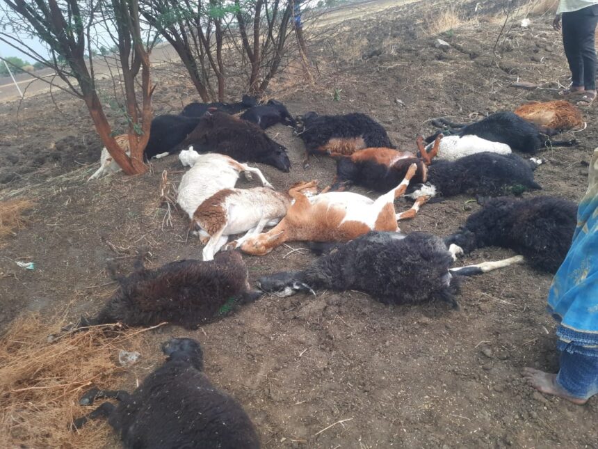 ಸಿಡಿಲು ಬಡಿದು 25 ಕುರಿಗಳು ಸಾವು