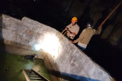 ನೀರಿ ಟ್ಯಾಂಕರದಲ್ಲಿ ಬಿದ್ದ ನಾಯಿ ರಕ್ಷಿಸಿದ ಅಗ್ನಿಶಾಮಕ ದಳ